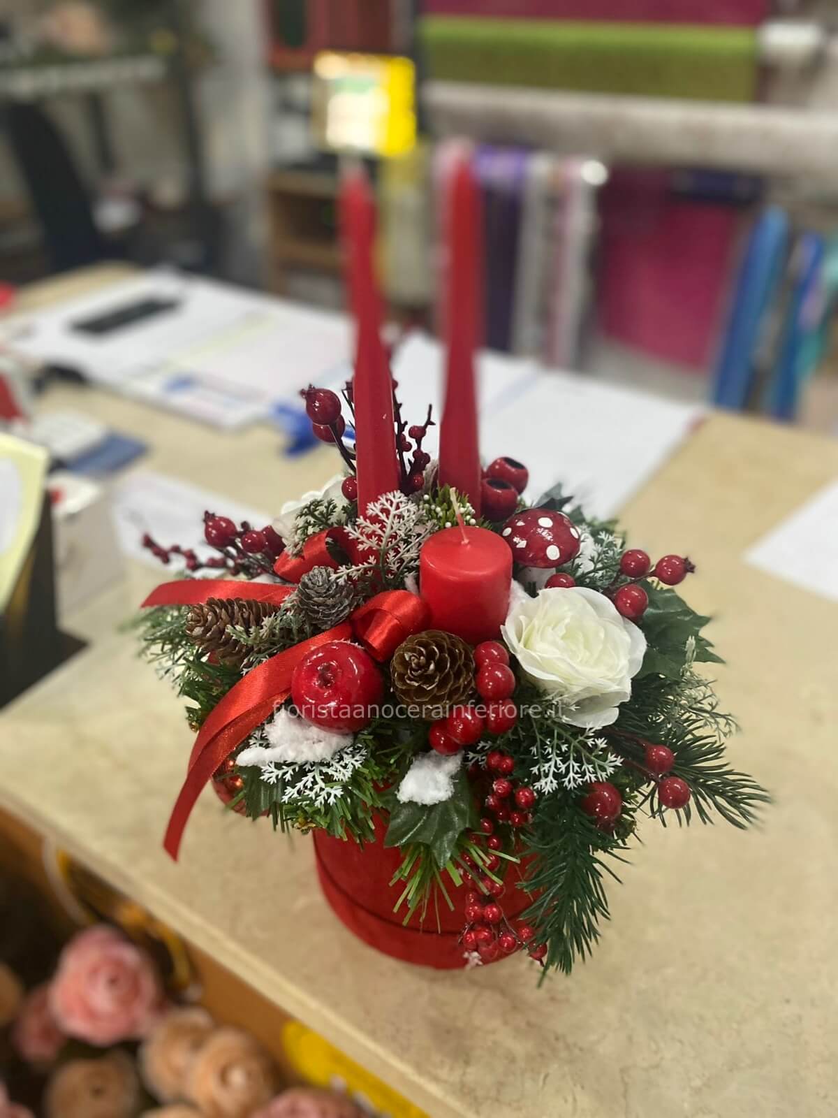 composizione natalizia fiori finti