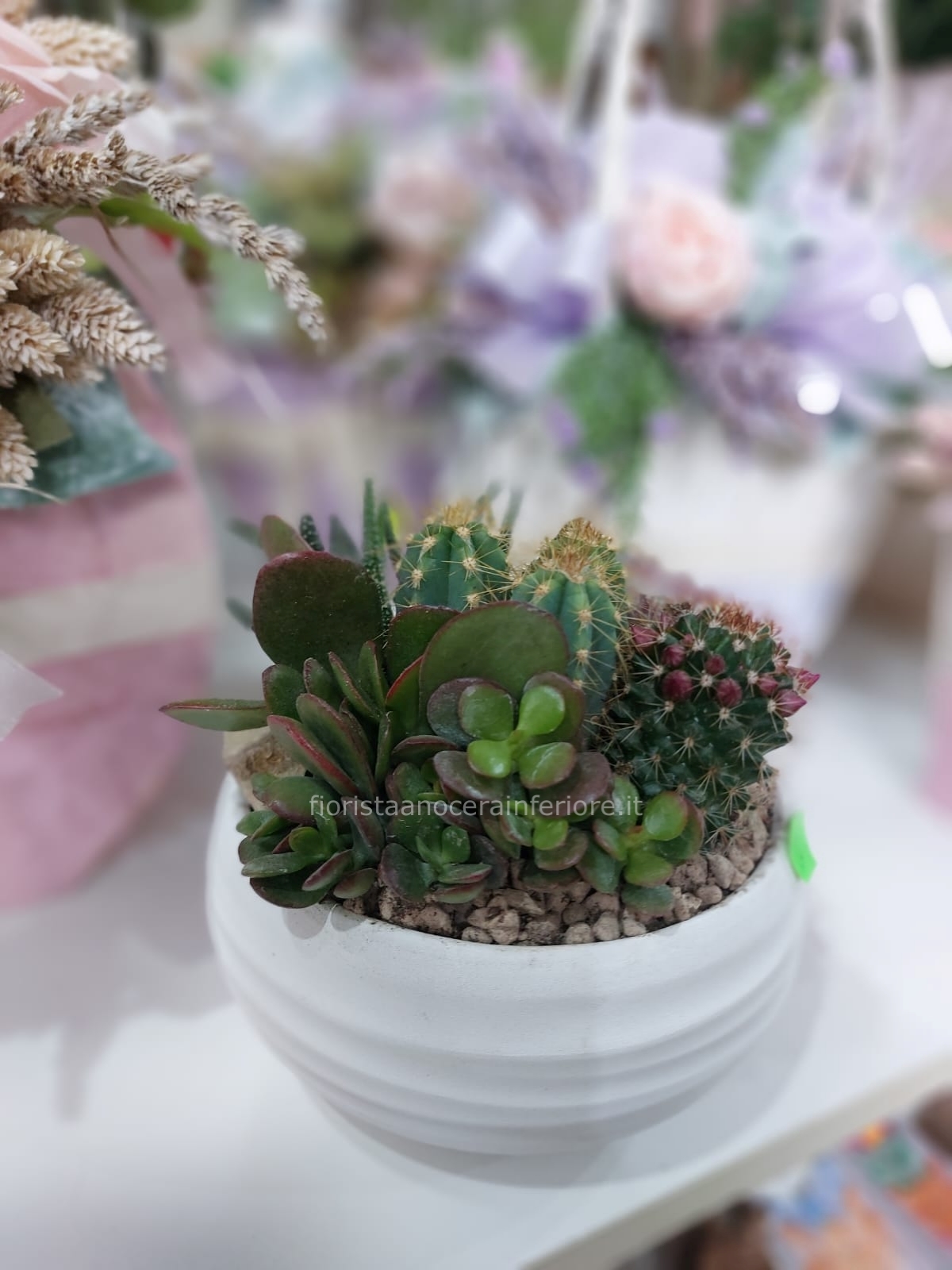 Regala un piccolo angolo di deserto fiorito. Le piante grasse sono simbolo di forza e tenacia, rendendo questa composizione un augurio pasquale profondo e significativo.